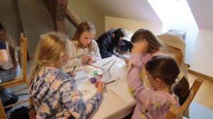 Po duchowych przeżyciach przyszedł czas na poznawanie historii i naukę poprzez zabawę – dzieci zwiedziły Muzeum Wiedzy o Cynku oraz podziemia olkuskiego rynku, gdzie wzięły udział w ciekawych warsztatach plastycznych. 🎨🕯️