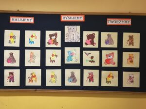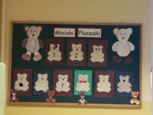 W tym dniu dzieci zostały zaproszone do wspólnej zabawy w misiowej krainie. Poznały historię pierwszego pluszowego misia o imieniu „Teodor” tzw. „Tedy” oraz zapoznały się z podstawowymi informacjami o życiu prawdziwych niedźwiedzi. Uczniowie przypomnieli sobie postacie ważnych i znanych misiów, bohaterów książek i filmów: „Miś Uszatek”, „Miś Coralgol”, „Kubuś Puchatek” itp. Dużo radości sprawiło dzieciom wyklejanie kawałkami wełny szablonowych misiów, które wyeksponowane zostały w sali świetlicy. Nie zabrakło też „misiowych kolorowanek” oraz rzeczywistych pluszowych misiów, gdyż każdy uczeń mógł przyjść do szkoły ze swoim „Pluszowym przyjacielem”. Ten wyjątkowy czas spędzony z „Misiakami- pluszakami” dostarczył dzieciom niezapomnianych wrażeń, a dorosłym przypomniał beztroskie chwile z dzieciństwa.