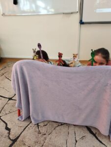 Podczas zajęć w klasach 2a i 2b, których tematem był teatr lalek, uczniowie poznali jego historię oraz różne rodzaje lalek teatralnych, m.in. pacynki i kukiełki. Następnie samodzielnie wykonali własne lalki, rozwijając przy tym kreatywność oraz zdolności manualne. Zwieńczeniem zajęć było odegranie przez uczniów krótkich, przygotowanych przez siebie scenek, w których wcielili się w rolę aktorów teatru lalek.