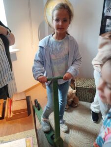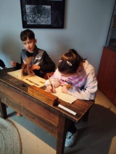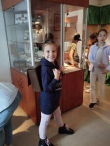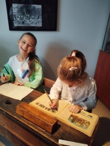 W piątek – 17 października 2025 r. klasa 2A z ogromnym zainteresowaniem oglądała wspaniałą wystawę w Muzeum Regionalnym w Skawinie. Pozwoliła ona uczniom przenieść się w przeszłość, w której mogli zobaczyć, jak dawniej uczono w szkole. Pani Jadwiga Pierzchała – Dyrektor Muzeum z wielkim zaangażowaniem i w niezwykle ciekawy sposób opowiadała historię i ciekawostki dawnej szkoły. Dzieci mogły usiąść w starej, szkolnej ławce, obejrzeć Pierwszy Elementarz, zeszyty i inne przybory szkolne ówczesnych uczniów. Z dużym zaciekawieniem oglądały również prezentowane stare zabawki. Niektórym nawet spodobało się szkolne życie w tamtych czasach.